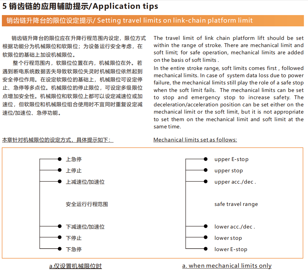 博鱼在线(中国)唯一官方网站刚性链升降台的限位设定提示
