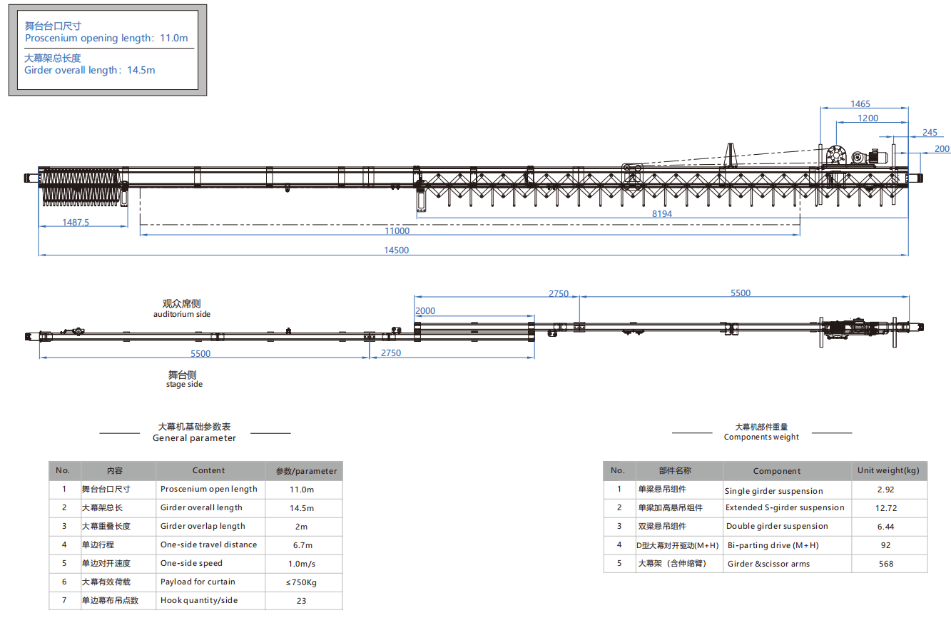 大幕机选型图 11.0m/14.5m
